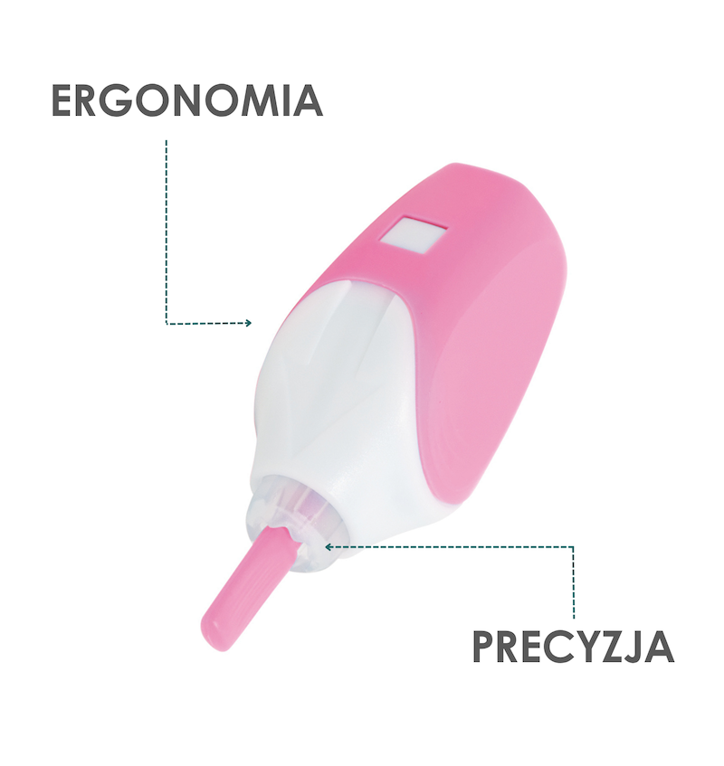 • Zagłębienie w obudowie umożliwia wygodne, ergonomiczne umieszczenie palca podczas wykonywania nakłucia.1,2,3